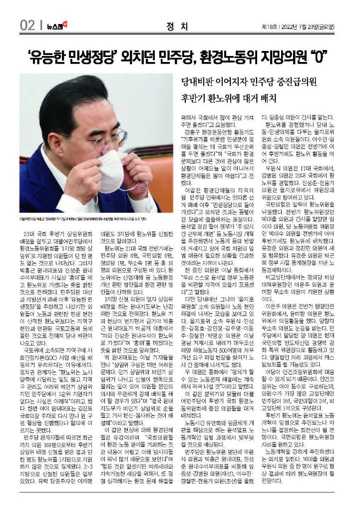 ‘유능한 민생정당’ 외치던 민주당, 환경노동위 지망의원 “0”
