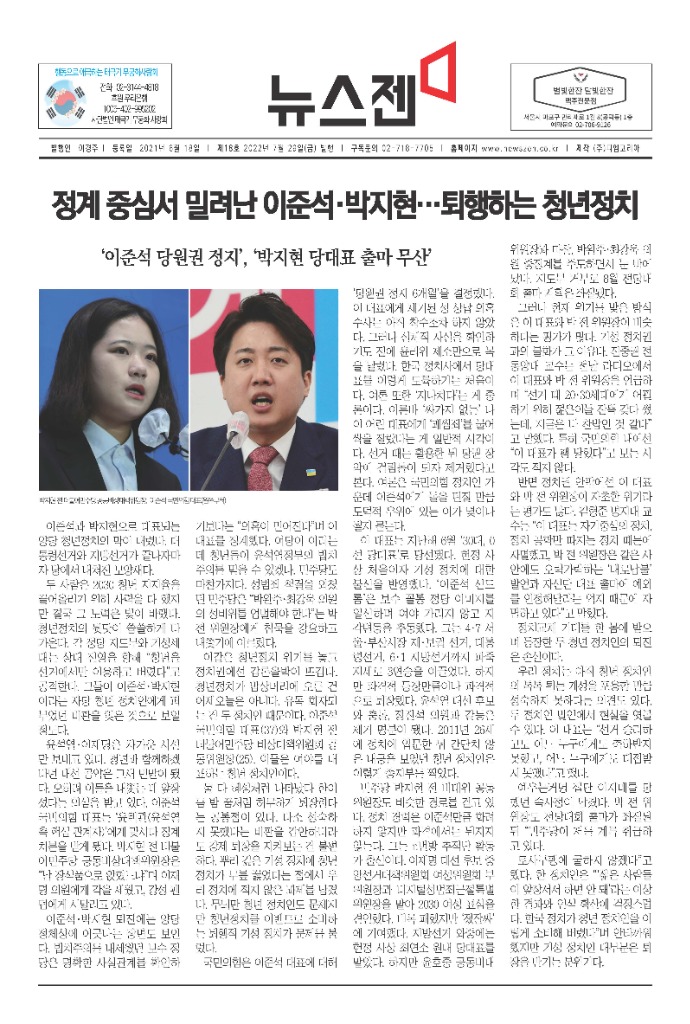 정계 중심서 밀려난 이준석·박지현…퇴행하는 청년정치