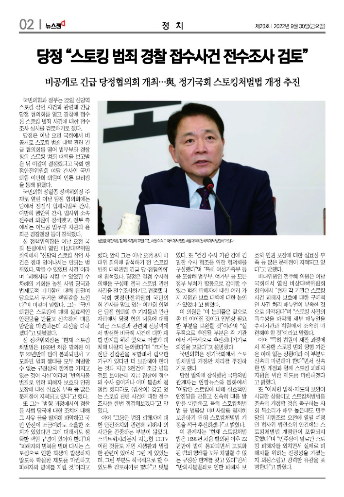 -당정 “스토킹 범죄 경찰 접수사건 전수조사 검토”