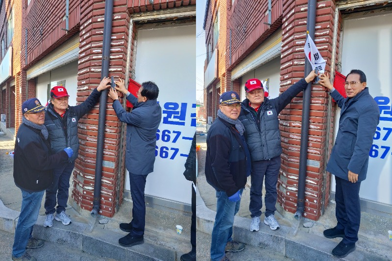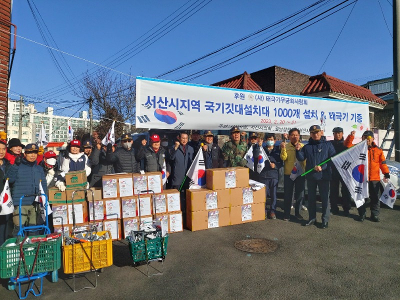 사단법인 태극기무궁화사랑회(회장:이경주)는 2월20일 오전9시30분 충남 서산시 학동에서 서산시 지역 국기깃대설치대 1000개 설치작업을 실행하고 고급형 태극기 100세트를 기증하는 행사를 성황리에 마쳤다.
