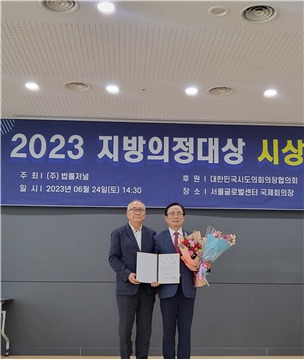 ㈜‘법률저널’이 창간 25주년을 맞아 개최한 ‘2023 지방의정대상-우수조례 및 우수의원연구단체’ 시상식에서, 국내 지방자치분야 전문가들로 구성된 심사위원들이 엄정한 심사를 거쳐 김 의원을 수상자로 선정했다.