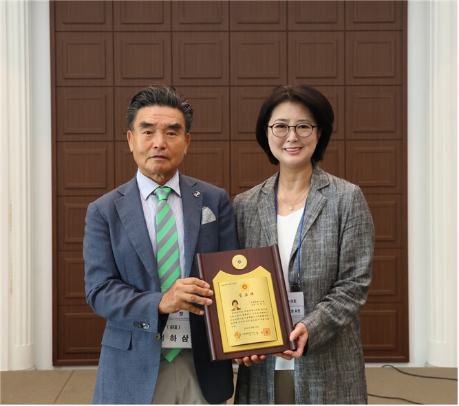서울특별시의회 행정자치위원회 옥재은 의원(중구2, 국민의힘,사진 오른)이 지난 23일(금) 전‧현직 서울특별시의원 합동세미나에서 자리에서 서울특별시 의정회로부터 공로패를 받았다.