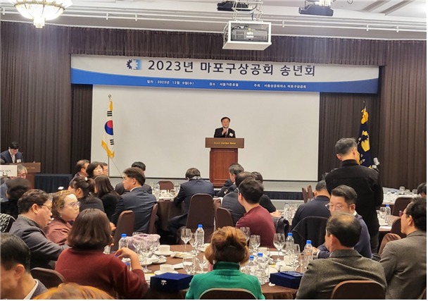 서울상공회의소 마포구상공회(회장 이재흥)는 12월06일(수) 17시부터 서울가든 호텔 2층 그랜드볼룸에서 ‘2023년 송년회 및 제18기 CEO 아카데미 연구과정 수료식’을 진행했다고 밝혔다. 이날 행사는 1부 수료식, 2부 송년회 3부 만찬과 연회 순으로 정청래 국회의원, 김영미 마포구의회의장등 관내 주요기관장들과 수료생 47명 및 이재흥회장을 포함한 마포구상공회 임원등 150여명이 참석한 가운데 시종일관 화기애애한 분위기 속에서 개최되었다.